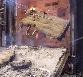 Engedéllyel végignézhettem az ÉMI laboratóriumában a kenderbeton tűzvizsgálatát. Az eredmény B0. Az anyagban található szerves összetevő miatt nem is lehetett jobb minősítést adni. Szerintem pedig gyakorlatilag nem éghető. Lángterhelés alatt az anyag nem lángolt, nem csöpögött csak izzott. Füstgáz alig keletkezett. A vizsgálat végén a 10 cm-es elemet már negyed óra után ki lehetett venni. A kivételt a hátuljánál megfogva végeztük kesztyű nélkül. Engem nagyon meggyőzött.